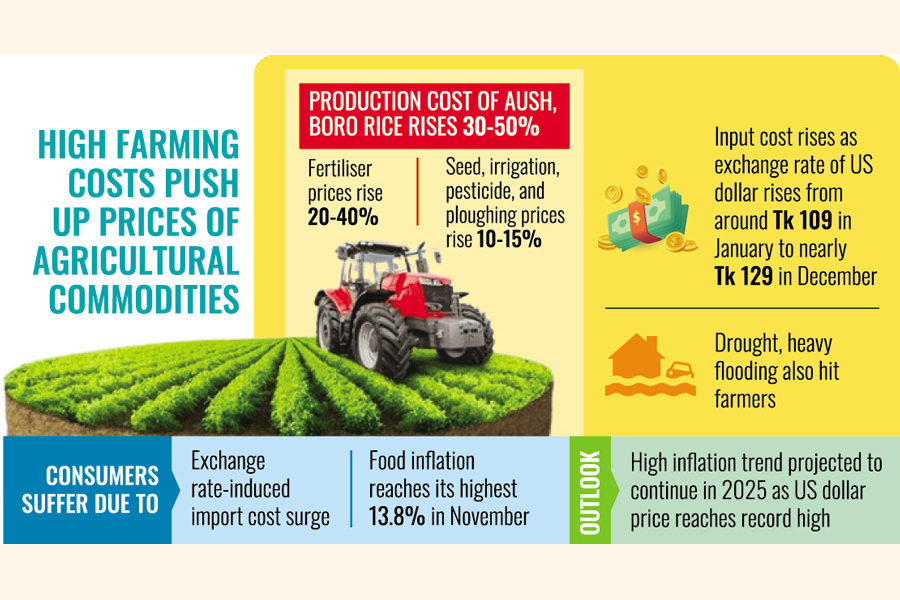 The production costs for Aus and Boro rice rose sharply, with farmers having to spend 30-50 per cent more on irrigation due to the prolonged dry spell.