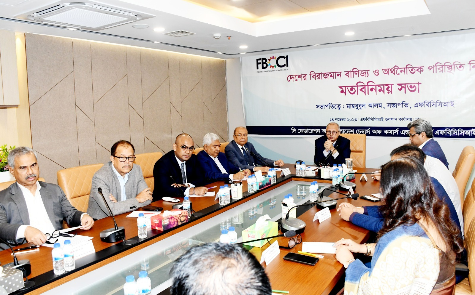 The FBCCI President presided over the meeting and discussed various issues including ongoing political violence, dollar crisis, price inflation, control of import of luxury goods, bank loans, foreign exchange reserves, ensuring a business-friendly environment, LCs, and others.