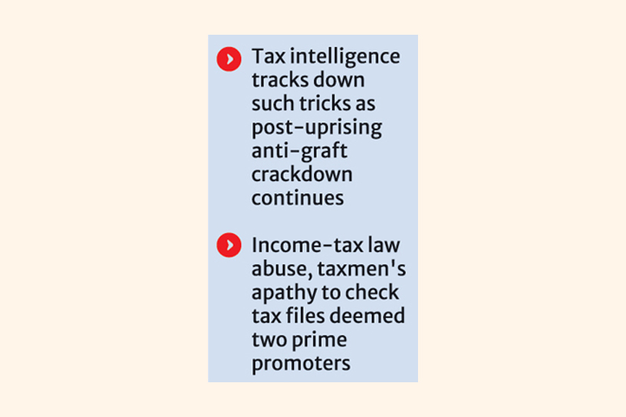 The tax sleuths suspect that the four owners of the corporate-Abul Kashem, Abul Hashem, Abu Syed Chowdhury, and Shah Shafiqul Islam-have evaded paying taxes by "falsely" declaring fish-farm incomes.