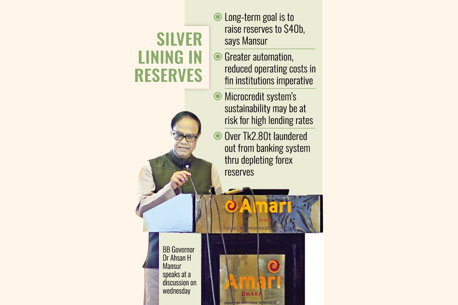 "Some progress has already been made - reserves have started growing - and we expect them to rise further in the coming days," said the BB governor, Ahsan H Mansur, adding that the long-term goal is to raise reserves to $40 billion, although reaching that target will take time.