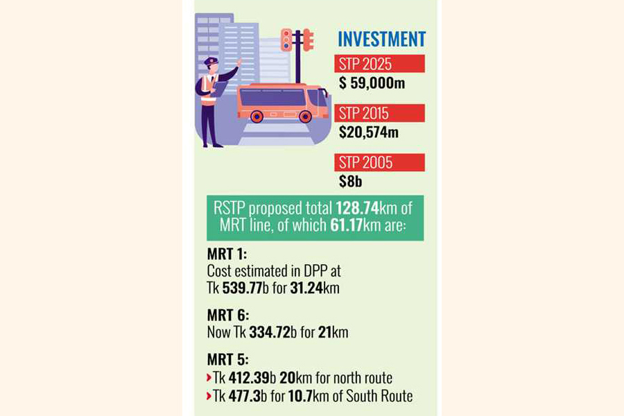 An analysis of the three STPs by the FE reveals that while six MRTs have been proposed for development, the total cost of four of them has soared to Tk 1.67 trillion, up from Tk 945.31 billion in the 2015 STP.