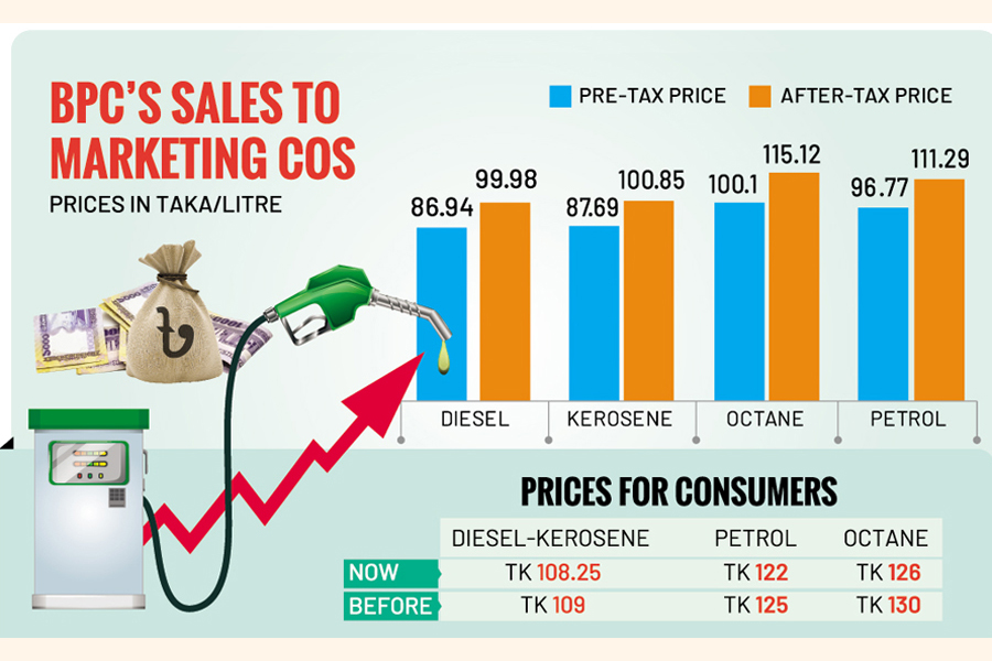 Prices of fuel oils fall somewhat, for cuts by Tk 0.75-Tk 4.0 per litre, as Bangladesh goes for automated petroleum pricing under a reform programme.