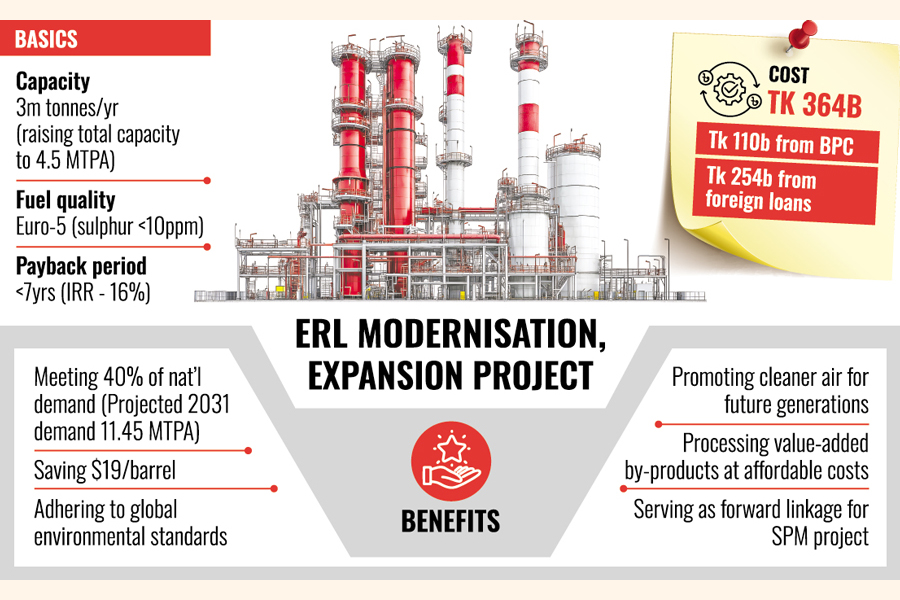 The EMRD recently decided to implement the project titled "Modernisation and expansion of Eastern Refinery Limited (ERL)" with foreign financing and BPC's own financing.