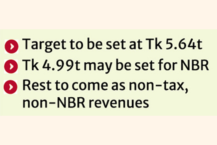 The government is set to fix its total revenue target for the upcoming fiscal year at Tk 5.64 trillion, expecting nearly 4.25 per cent growth from the FY25 figure.