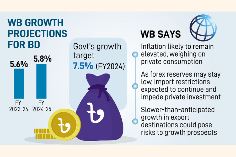 "The growth in Bangladesh is forecast to slow to 5.6 percent in FY2024 (July 2023 to June 2024)," says the World Bank in its GEP update.
