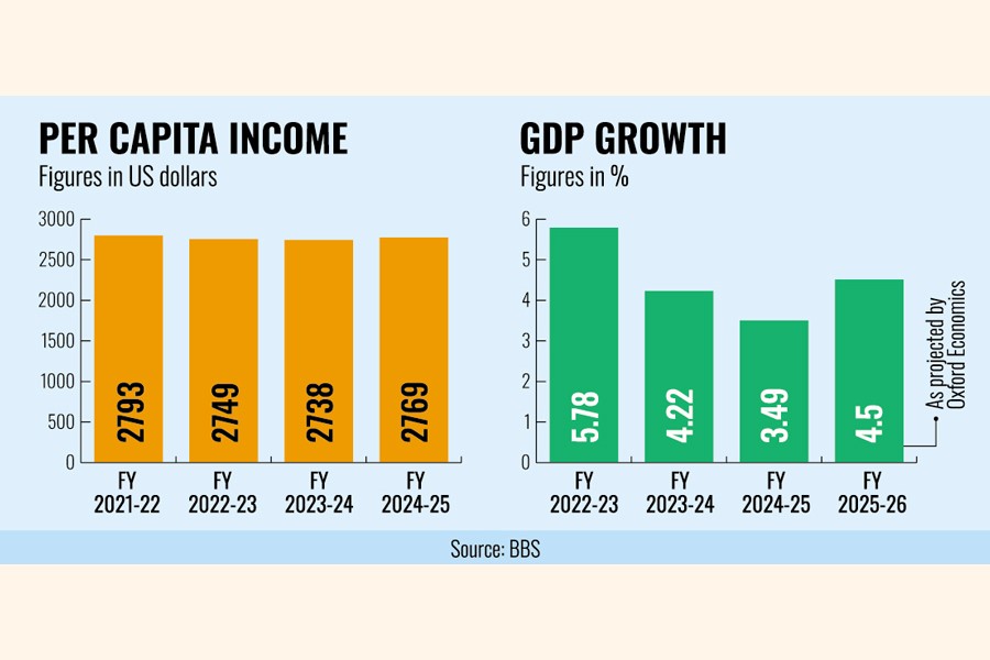 Meanwhile, the country's economy expanded by 3.49 per cent in fiscal year 2024-25, as tight monetary policy and restrained government spending weighed on activity, while inflationary pressures remained elevated, says Bangladesh Bureau of Statistics (BBS).