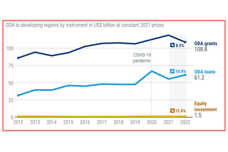 The UN report also showed that the share of grants in total ODA dropped to 63 per cent in 2022, marking the smallest percentage in two decades. The exception was the initial year of the Covid-19 pandemic, which saw a 62 per cent decline.