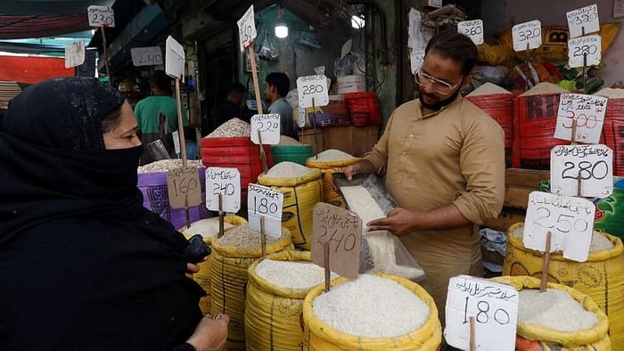 A shopkeeper fills a bag of rice for a customer, at a shop along a market in Karachi, Pakistan Jun 9, 2023. |REUTERS