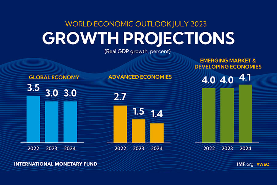 The IMF said world trade growth is declining and will reach just 2.0 per cent in 2023 before rising to 3.7 per cent in 2024, but both growth rates are well below the 5.2 per cent clocked in 2022.