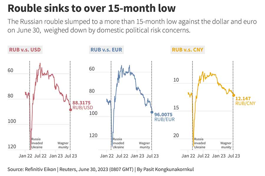 Capital controls have helped insulate the rouble against geopolitics in the 16 months since Russia invaded Ukraine, but mercenary leader Yevgeny Prigozhin's aborted weekend march toward Moscow reverberated through markets and raised questions about President Vladimir Putin's grip on power.