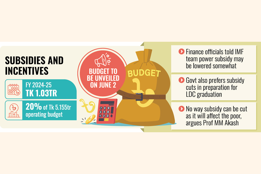 In the outgoing fiscal budget, the total allocation for subsidies and incentives was Tk 1.03 trillion, which is 20 per cent of the total operating budget of Tk 5.155 trillion.
