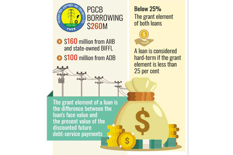 Of the loans approved on Wednesday, the PGCB is borrowing $160 million from the Asian Infrastructure Investment Bank (AIIB) and the Bangladesh Infrastructure Finance Fund Limited (BIFFL), a government-owned specialised finance company, and $100 million from the Asian Development Bank (ADB).