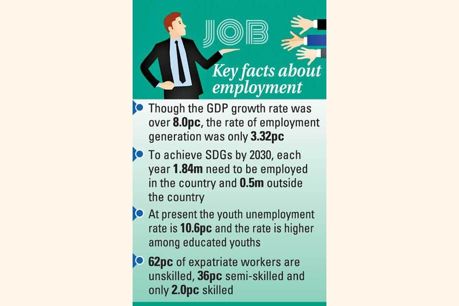 Citing research findings, it said, to achieve the SDGs by 2030, each year 1.84 million people need to be employed in the country while another 0.5 million outside the country.