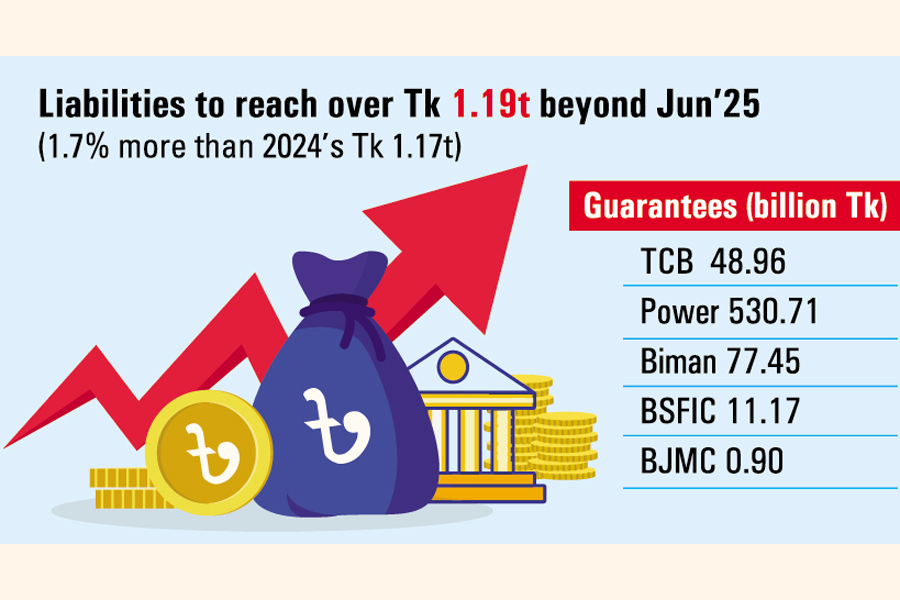 Government liabilities from underwriting loans taken by state-owned enterprises (SOEs) from domestic and international lenders are ballooning, coming to over Tk 1.19 trillion in a period beyond this June, official statistics show.
