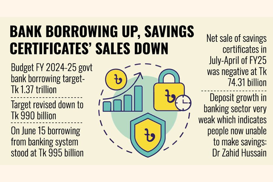 Central bank data show during the July-April period of FY25, net sales of national savings certificates had been negative at Tk 74.31 billion as encashment surpassed fresh investments.