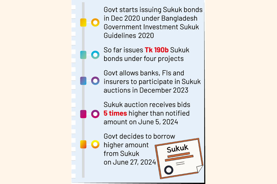 The government has gone for issuing Sukuk bonds since December 2020 in line with the Bangladesh Government Investment Sukuk Guidelines 2020. So far, some Tk 190 billion worth of Sukuk bonds have been issued under four projects, finance ministry data show.