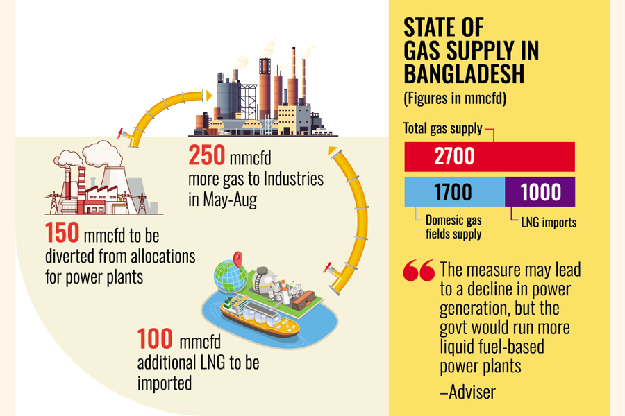 The government has planned to enhance natural gas supply to industries for next four months (May-August) by cutting supplies to the power plants and increasing imports of liquefied natural gas (LNG).