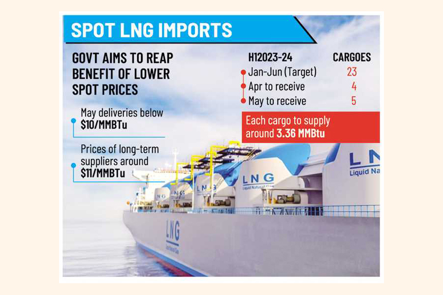 The government has decided to import a total of 23 spot LNG cargoes during the January-June 2024 instead of the previously set 13 to reap the benefits of lower prices in the international market.