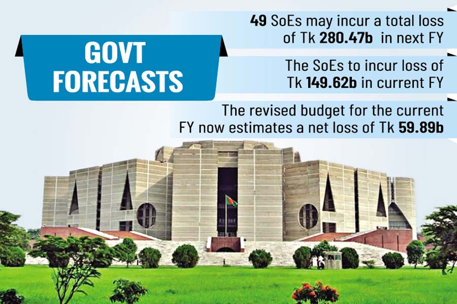 The government forecasts that 49 SoEs may incur a total loss of Tk 280.47 billion in the next fiscal year, compared to a projected loss of Tk 149.62 billion in the current year.