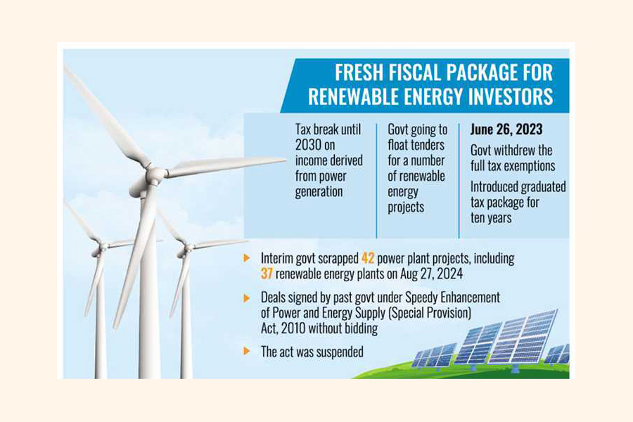 A restoration action comes soon from the interim government to reinstate the fiscal package for renewable energy-based power plants to attract potential investors.