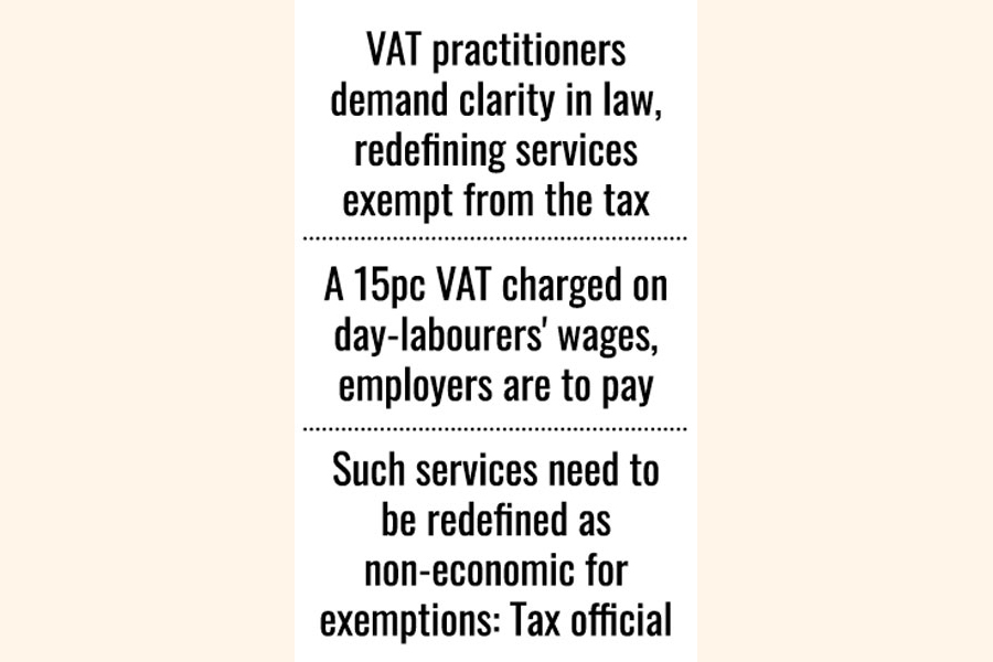 Dr Md Abdur Rouf, a member of the VAT implementation and IT wing, sent a note to the VAT policy wing with request for clarification on the status of day-labourers' services.