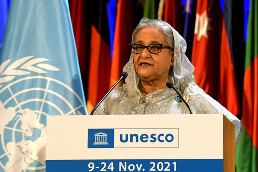 The prime minister addressed a ceremony in Paris to hand over the UNESCO-Bangladesh Bangabandhu Sheikh Mujibur Rahman International Prize for the Creative Economy on Thursday, reports bdnews24.com.