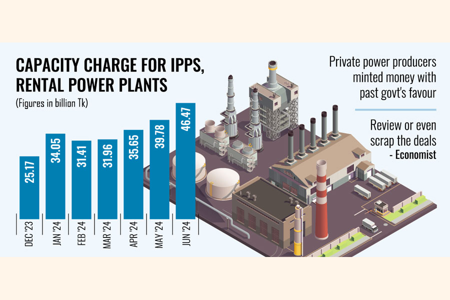 Month-on-month capacity- charge payments to a bunch of privileged private electricity producers during the deposed Sheikh Hasina administration had been swelling beyond the capacity of the exchequer, insiders said on Friday.