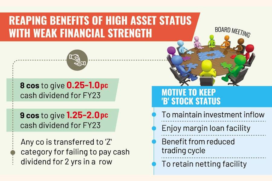 Like Zaheen Spinning, many other companies with poor business performance have retained their position in the 'B' group just by releasing very nominal amounts of cash dividends.