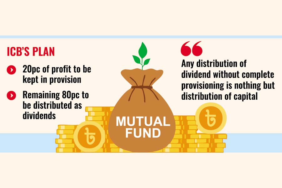 The proposal came at a meeting on Saturday between officials of the Bangladesh Securities and Exchange Commission (BSEC) and market stakeholders. ICB Managing Director Niranjan Chandra Debnath suggested allocating 20 per cent of the profits in the current fiscal year for provisioning and the rest for paying dividends to unitholders.