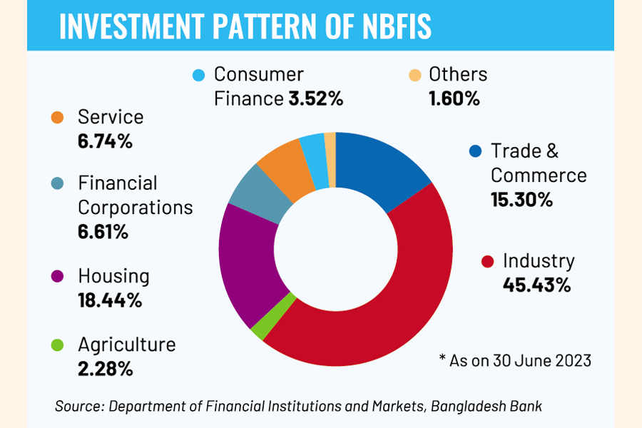 Highlighting that NBFIs' investment is largely concentrated in the industrial sector, the Bangladesh Bank (BB) data reveals an uptick in their investment in trade and commerce in FY23.