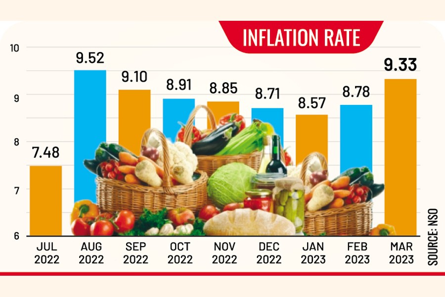 Bangladesh sees inflation soar amid price spikes as official arithmetic put the rate at 9.33 per cent for March—the highest in seven months—worsening consumer woes.