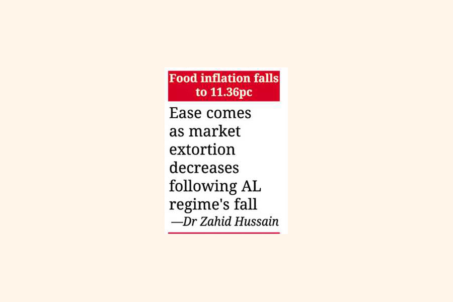 As for the fall in food inflation in both urban and rural areas in August, he notes that "extortion decreased following the fall of the Awami League regime on August 5" that brought a nonpolitical interim regime in the seat of power.