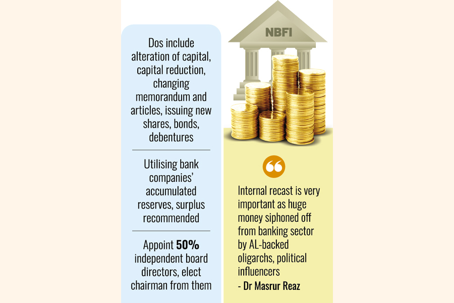 A prominent economist and public-policy expert, Dr M. Masrur Reaz, believes internal reconstruction of the problem banks is very important as a significant amount of money has been siphoned off from the banking sector by Awami League-backed oligarchs and political influencers.