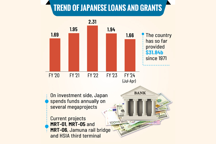 According to another ERD official, Japan is currently bankrolling some mega-and larger projects in Bangladesh which need lots of fund investment every year.