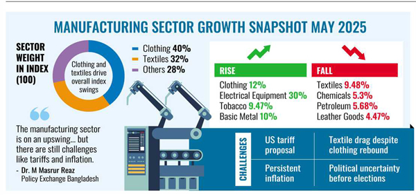 Dr. M. Masrur Reaz, chairman and CEO of the Policy Exchange Bangladesh told the FE that the manufacturing sector is on an upswing adding: "There are some challenges in the economy yet as the US tariff and persistent higher rate of inflation,