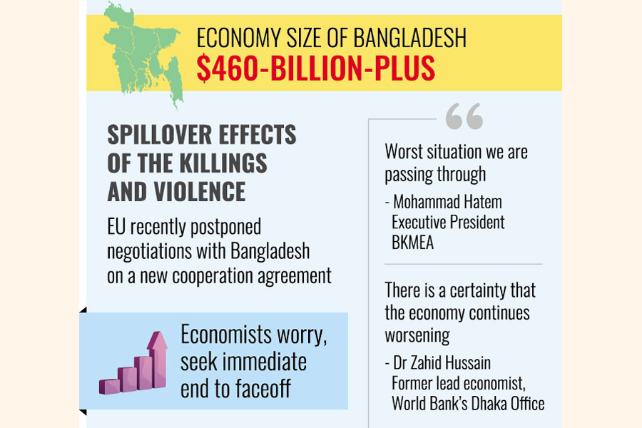 They also fear spillover effects of the killings and violence already started hitting the economy as the European Union (EU) recently postponed negotiations with Bangladesh on a new cooperation agreement after criticism of Dhaka's response to contain deadly protests, which will "undoubtedly" affect exports to the 27-nation economic bloc.