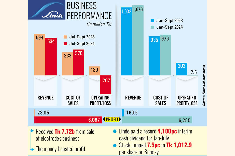 The sale proceeds boosted Linde's nine-month profit too. Its income in January-September climbed 39 times year-on-year to Tk 6.28 billion.