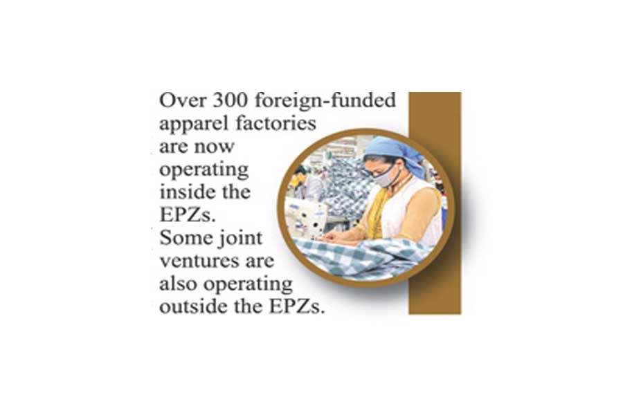 Over 300 foreign-funded apparel factories are now operating inside the EPZs. Some joint ventures are also operating outside the EPZs.