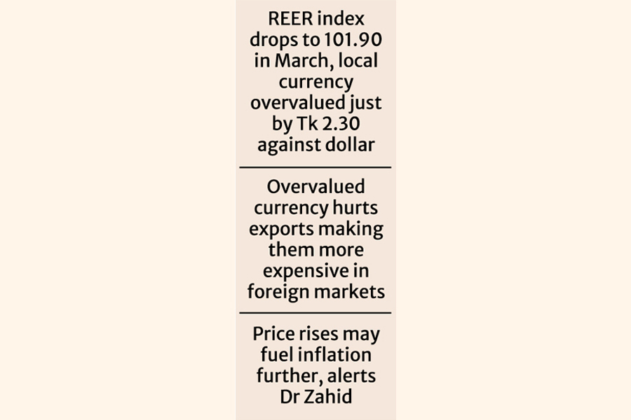 Dr Zahid Hussain, an independent economist, says Bangladesh's persistently high inflation compared to its trading partners is a key reason for the taka overvaluation against the US dollar.