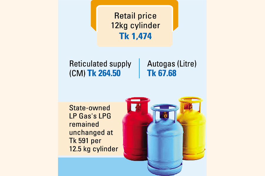 The price of state-owned LP Gas's LPG, however, remained unchanged at Tk 591 per 12.5 kg cylinder.