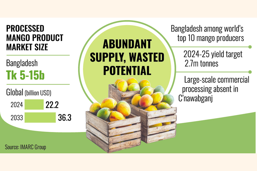 This not only reflects the unavailability of value-added products in the "mango capital" of Bangladesh, but also the country's failure to tap into the full economic potential of the delectable summer fruit.