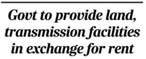 Explaining the new policy features, he said the power producers will have to find their own customers while the government will purchase a maximum 10-20 per cent of power from such plants and will provide transmission facilities in exchange for rent.