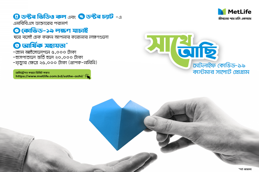 MetLife Bangladesh on Wednesday announced a new initiative in response to the COVID-19 situation in Bangladesh. The newly-launched programme titled “Sathe Achi – MetLife COVID-19 Customer Support Program” provides unique health and financial support for MetLife’s individual policy holders: