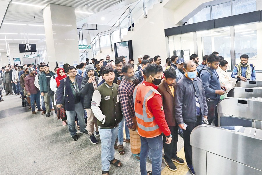 The FE talked with over 50 passengers at the Secretariat and Farmgate stations on Monday evening and found heavy passenger pressure at all entry and exit points following train arrivals.