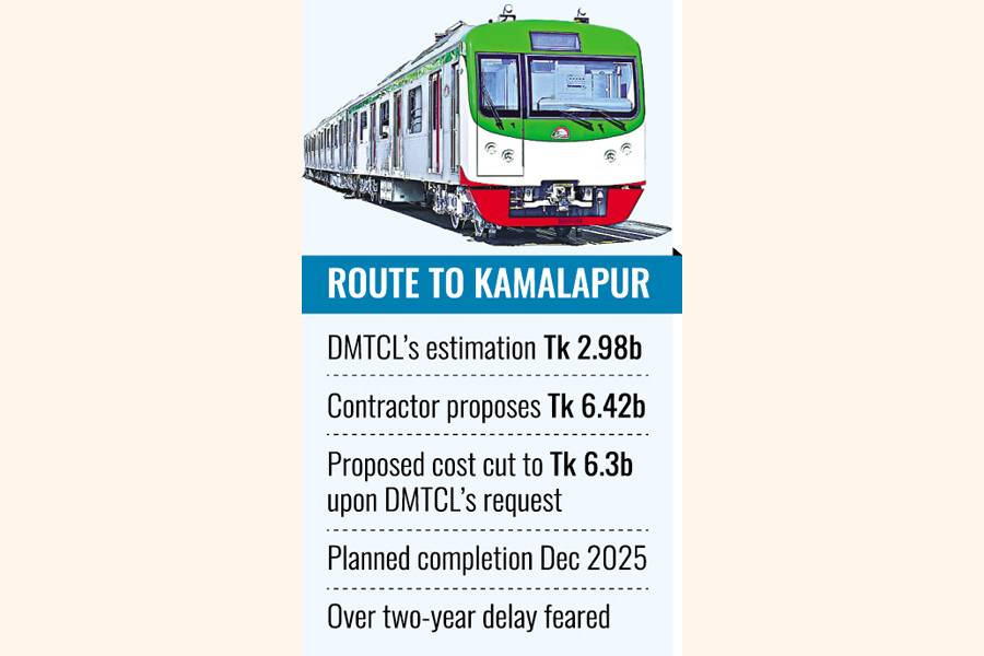The metro rail company faces uncertainties over finishing the existing Uttara-Motijheel route's extension to the Kamalapur Railway Station in time as the contractor has proposed an exorbitant rate for electrical and mechanical work.