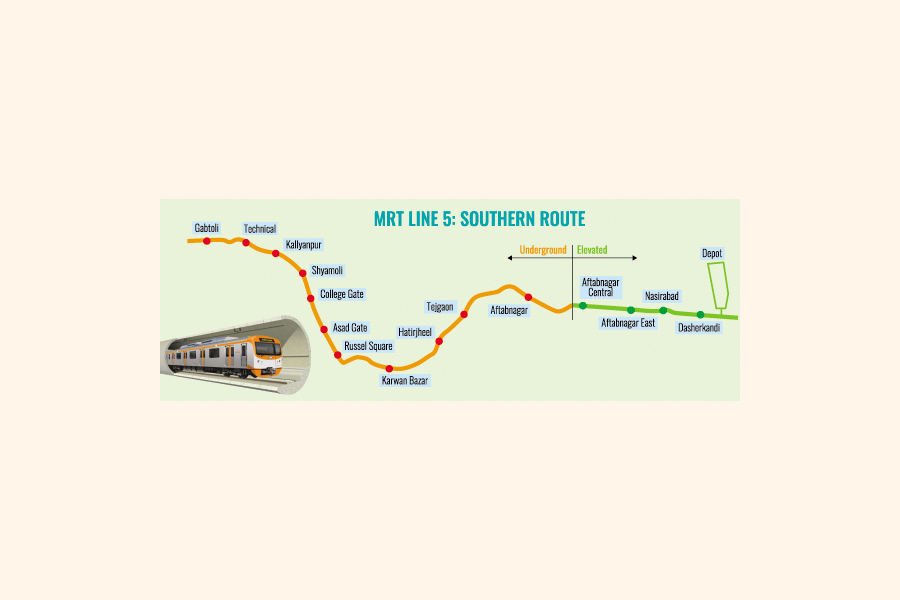Earlier, Dhaka Mass Rapid Transit Company Limited (DMTCL) planned to develop the 17.20-kilometre Gabtoli-Dasherkandi MRT-05 south corridor with financial support from the Asian Development Bank and South Korea.