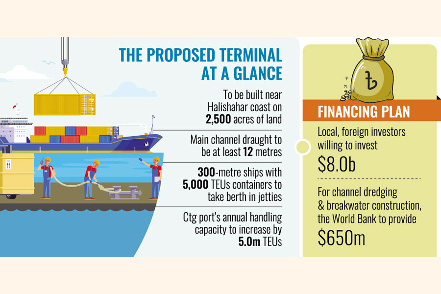 The CPA announced in May that foreign and local companies came forward to put in some $8.0 billion in the terminal which will help enhance Chittagong Port's annual handling capacity by 5.0 million Twenty-foot Equivalent Units (TEUs).