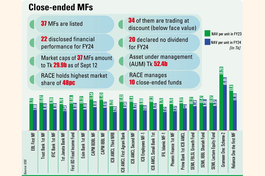 Six close-ended mutual funds managed by industry leader Bangladesh RACE Management suffered a big blow as their losses soared 11 times year-on-year to Tk 3.53 billion in total for FY24.