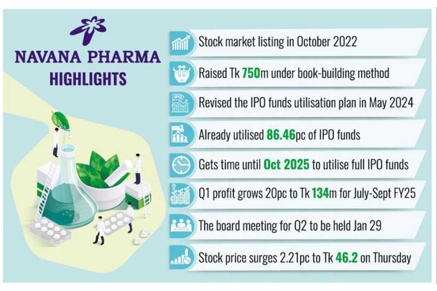 Navana Pharmaceuticals, which went public in 2022 by raising Tk 750 million through the book-building method, has revised its plan for the use of the IPO proceeds.