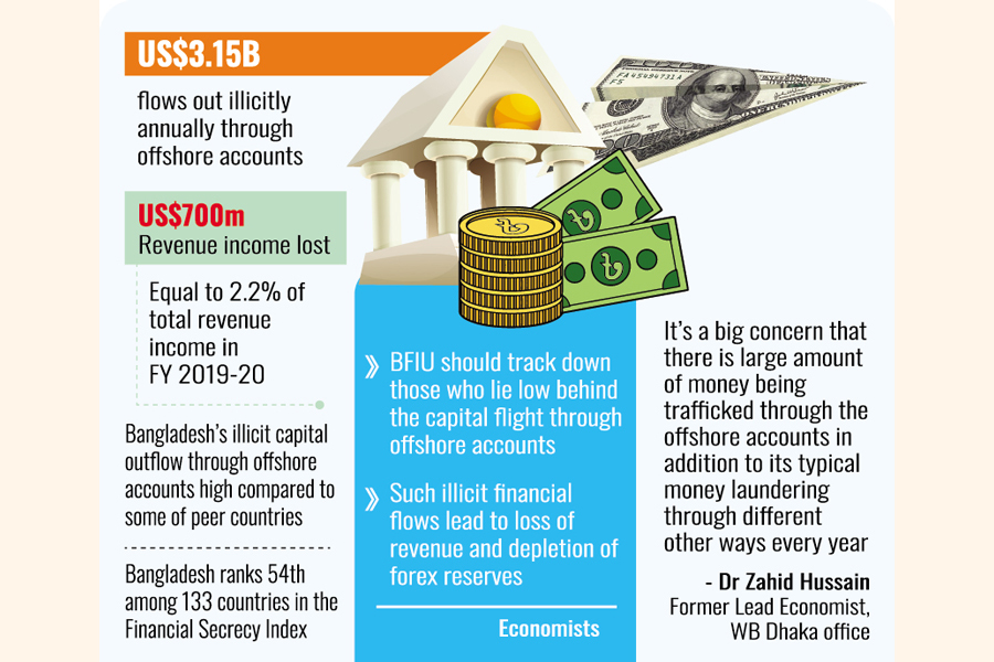 They say the Bangladesh Financial Intelligence Unit (BFIU), a dedicated public-sector organisation for tracing illegal money transfers, should track down those who lie low behind the capital flight through offshore accounts.